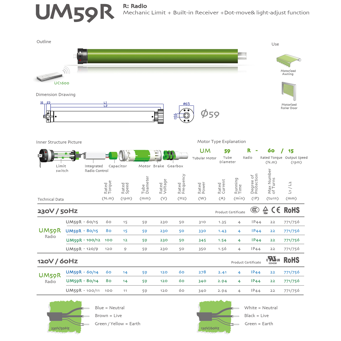 R:Radio/ Mechanic Limit+Integrated radio control+jogging & tilt