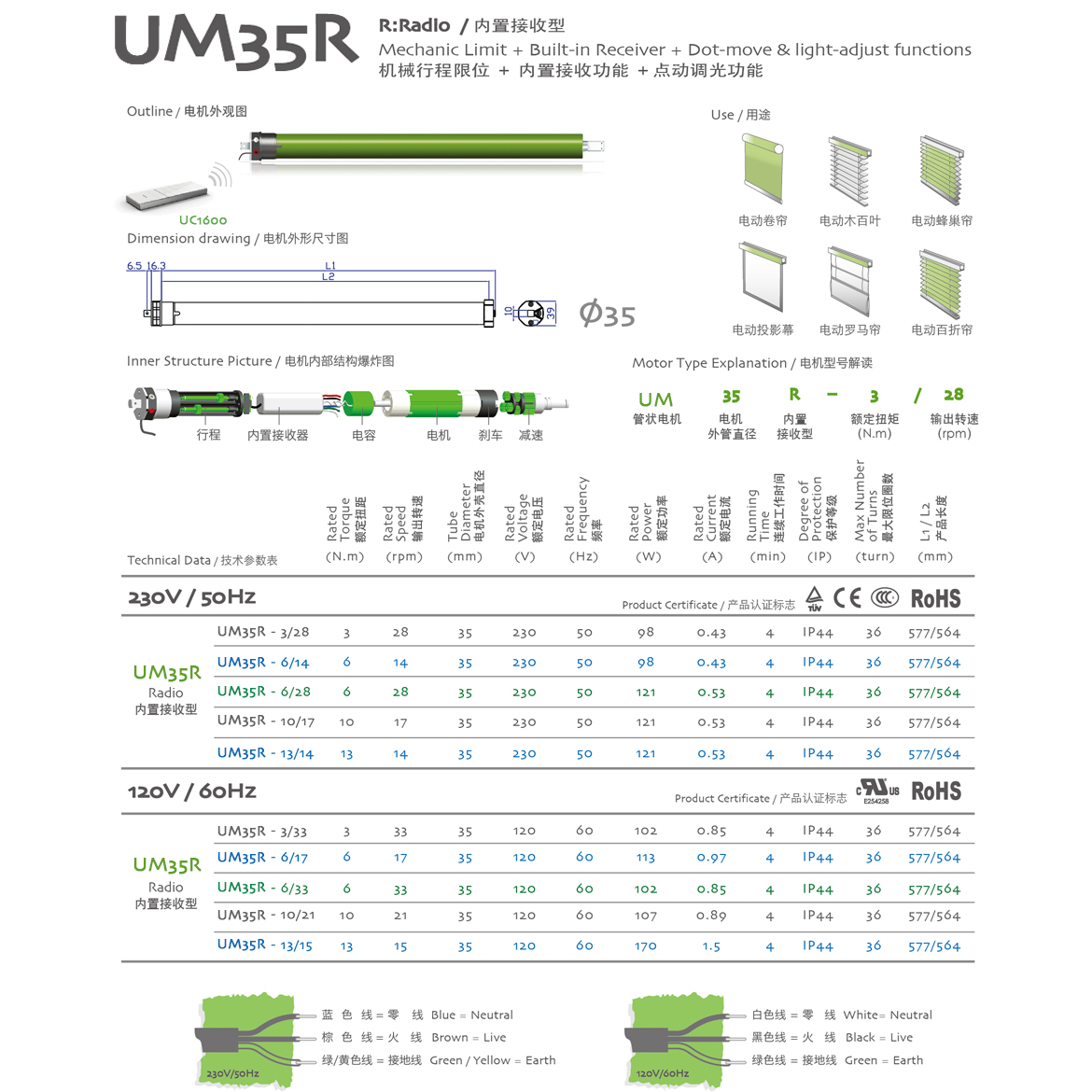 control+jogging & tilt/機械行程限位+內置接收器+點動調光功能